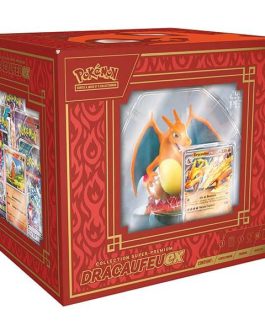 - Le Coffret Pokémon Super-Premium Dracaufeu-EX offre une figurine Dracaufeu-EX et des cartes promo rarespour enrichir votre collection. Inclut également des boosters du JCC Pokémon pour renforcer vos stratégies de jeu.